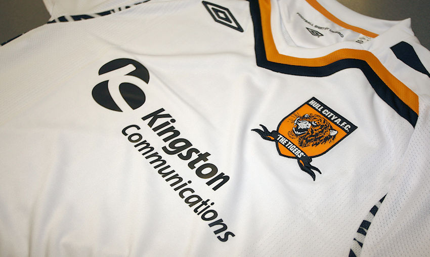 The sponsor was fundamentally the same on both home and away kits, local telecomms company Kingston Communications, but they chose to reflect their different brands with the home shirt carrying the KAROO brand wordmark whilst the away shirt carried the parent company logo and name.