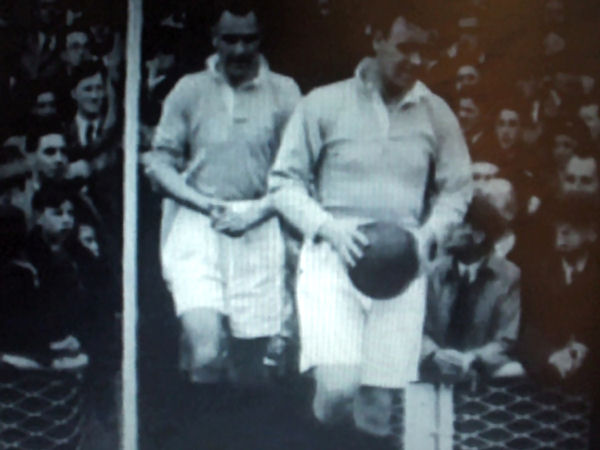 Were the 1935-36 shirts reused ten years later? It doesn’t look like it, the civic crest was not present, and looking at a screengrab of City players emerging from the Boothferry Park tunnel, the placket layer with the buttons on is white and the post war jersey appears to be a lighter blue than was used in 1935 (though that could be because of lighting or camera equipment differences). The socks used were definitely different, instead of blue and white hoops, stockings of a dark, solid tone (navy blue? black?) were worn for the 0-0 draw with Lincoln.