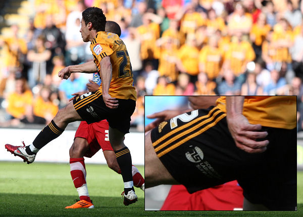 One of our Twitter followers, @hullrico, told us of a sponsor malfuntion on Robert Koren’s shorts last season. We had a look through some images from 2010/11 and he was dead right.