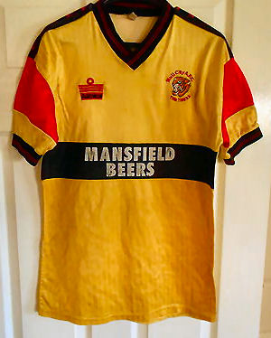 The biggest buzz was generated by a 1987/88 Admiral/Mansfield Beers home shirt with 8 on the back, suggesting it was used by Frankie Bunn who frequently wore that number. The partially flaked off sponsor and iron mark add rather than detract from this shirt’s charm, and it went for £160 after 20 bids.