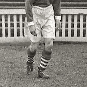 The baggy white shorts were quite long, but were worn so high on the waist that they still didn’t cover the knees. Completing the kit were hooped ‘stockings’ with a plain foldover band which looked superb.