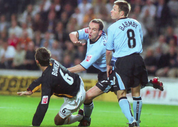 We could have loaned Bradford our away kit, though it was rumoured that Peter Taylor didn’t want to see Dean Windass, a Bradford player at the time, wearing a City shirt so elected to have both sides wear away kits instead. Regardless of that explanations veracity, the Tigers turned out in pale blue shirts and socks with black shorts for a 1-0 defeat.