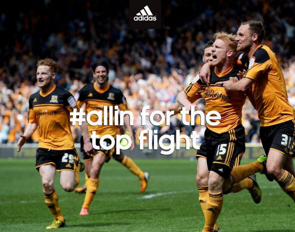 Hull City are back in the Premier League! It’s been nerve wracking, but our beloved Tigers have done it, securing second place in The Championship to gain entry into the top flight for a second time. Of course, The Tigers achieving promotion means more than the world being treated to the sight of Ahmed Elmohamady’s dancing, it will have kit implications too. City will trade Championship sleeve patches for Barclays Premier League appliqués, and will use the squad number and player name font reserved for the top division too.