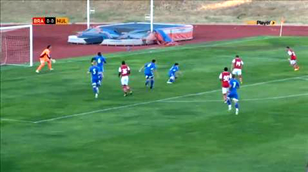 Wanting to take a complete new kit to Portugal, kit man John Eyre elected to use the royal blue, white and red away kit in two friendlies played in Albufeira. The full away kit with red socks was used in the 0-0 draw against Sheffield Wednesday, in which the Owls wore their new away kit (a black and yellow affair made by Puma). Against SC Braga however, City debuted alternate blue socks against the Portuguese League Cup holders, who use red socks with their primary kit.