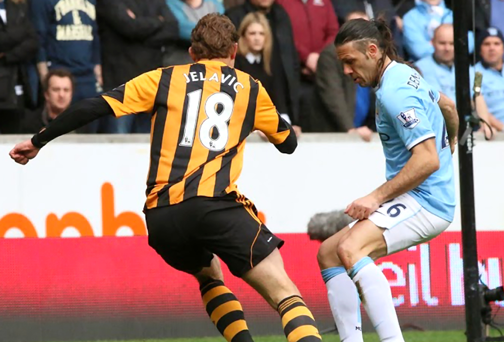 Aside from new attire, there were other notable kit occurrences... Nikica Jelavić finally got the diacritic above the C in his surname added to a Hull City shirt. Everton applied the acute accent when he played for them, and somewhat obviously it featured on his Croatian national team shirts at the World Cup in Brazil, but since his arrival from Goodison Park in the January transfer window, City had not bothered with the accent.