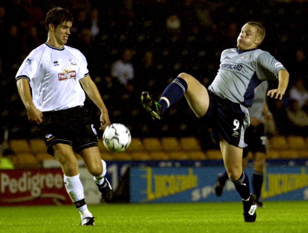 City had worn the away kit of silver shirts with navy blue shorts and socks at Derby County in the League Cup in September 2001, referee Graham Laws evidently didn’t see white shorts and black shorts v silver shirts and navy shorts as a clash.