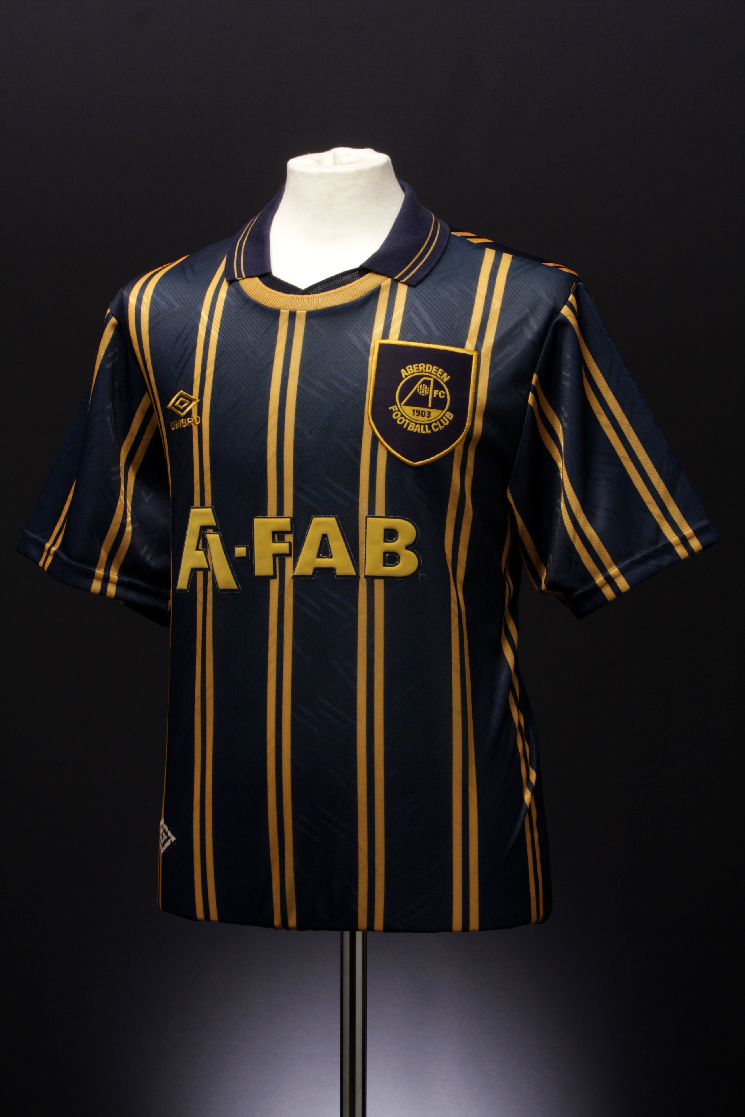 Upon release I immediately felt the 2018/19 home was an upgrade on the previous shirt, an impressive feat since I really liked Umbro’s work with the 2017/18 primary. The width of the ‘twin-stripes’ is thin enough to ensure the shirt remains bright overall, important on a shirt with black Raglan sleeves. It took me a while to realise it, but the ‘twin-stripe’ style I had initially thought of as thrillingly contemporary, is actually taken from the vast archives of Umbro. That style of stripes featured on Aberdeen’s away shirt for the 1993/94 campaign, which was black with amber stripes. Umbro have inverted the colourway for Hull City, and as a fanboy of the double-diamond brand and their rich heritage, it gratifies me to see elements of classic Umbro designs used on Tigers’ kit. The angular neckline has its roots in the 90s Dons shirt too, and the amber double-diamond cuff taping echoes the foldover bands on the Aberdeen kit’s socks.