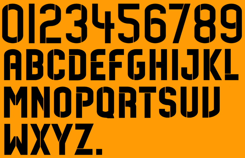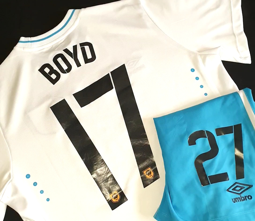 Ok, let’s take a look at the bespoke typeface that would be seen next on our Euro home shirts in the second leg… Numbers and letters alike are split in a stencil style. Is this in reference to Hull being a port? It recalls the stencils used to mark cargo boxes, and since Hull City’s kits would be shipped abroad for use in Europa League games, it seems somewhat fitting, whether by accident or design.