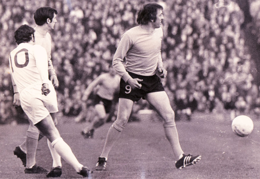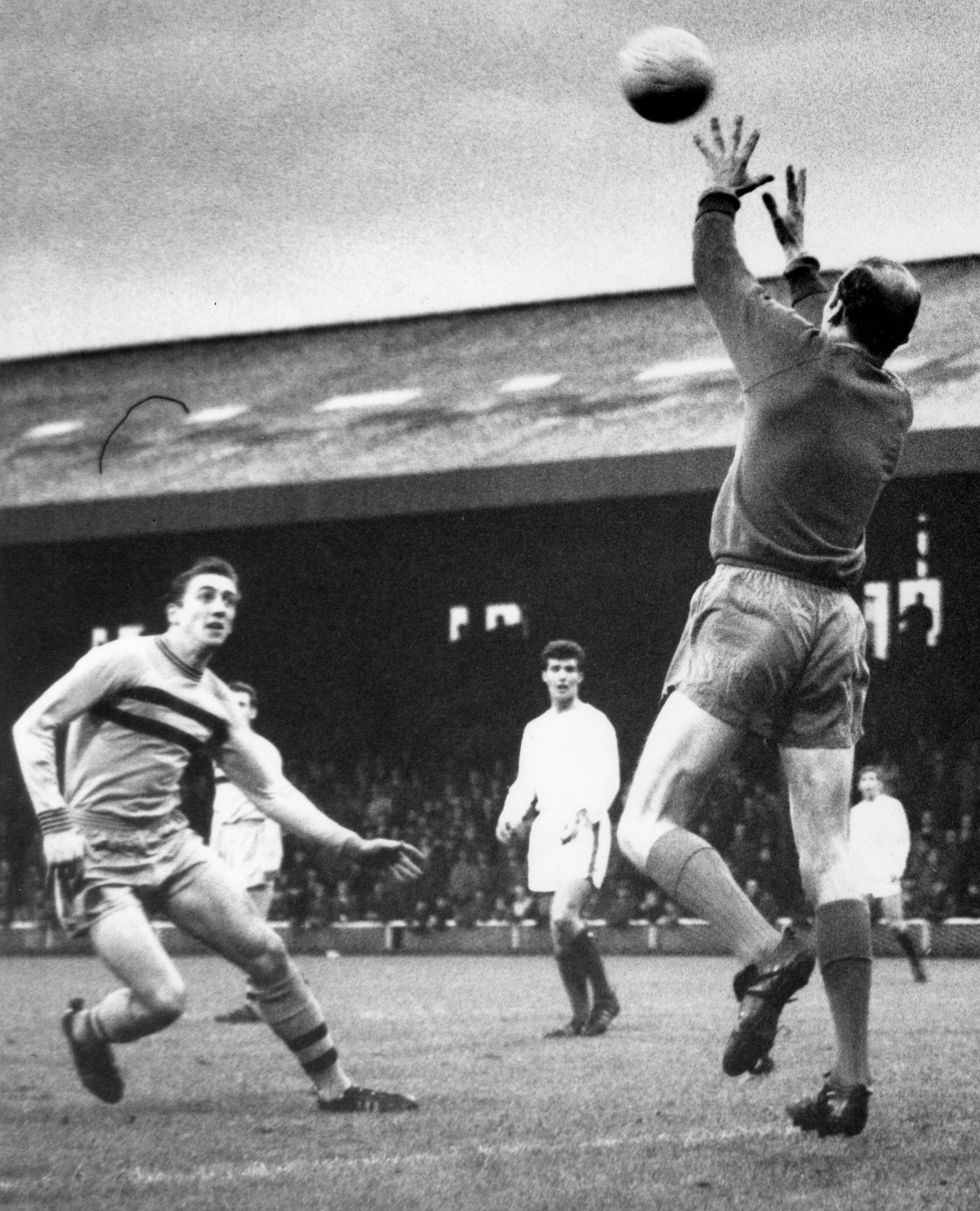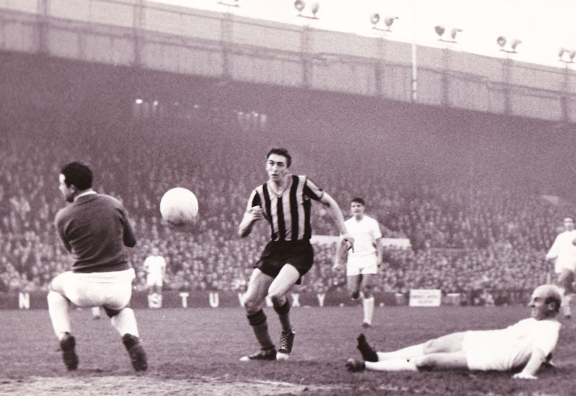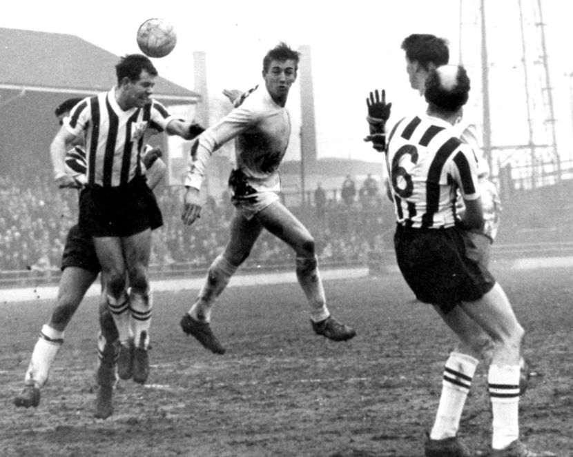 Leeds claim to have been copying Real Madrid when they changed their home kit from blue and yellow in 1961, but we suspect they were swayed by seeing how ace City looked in their traditional all-white change kit. Here Chillo heads for goal at Notts County in January 1964.