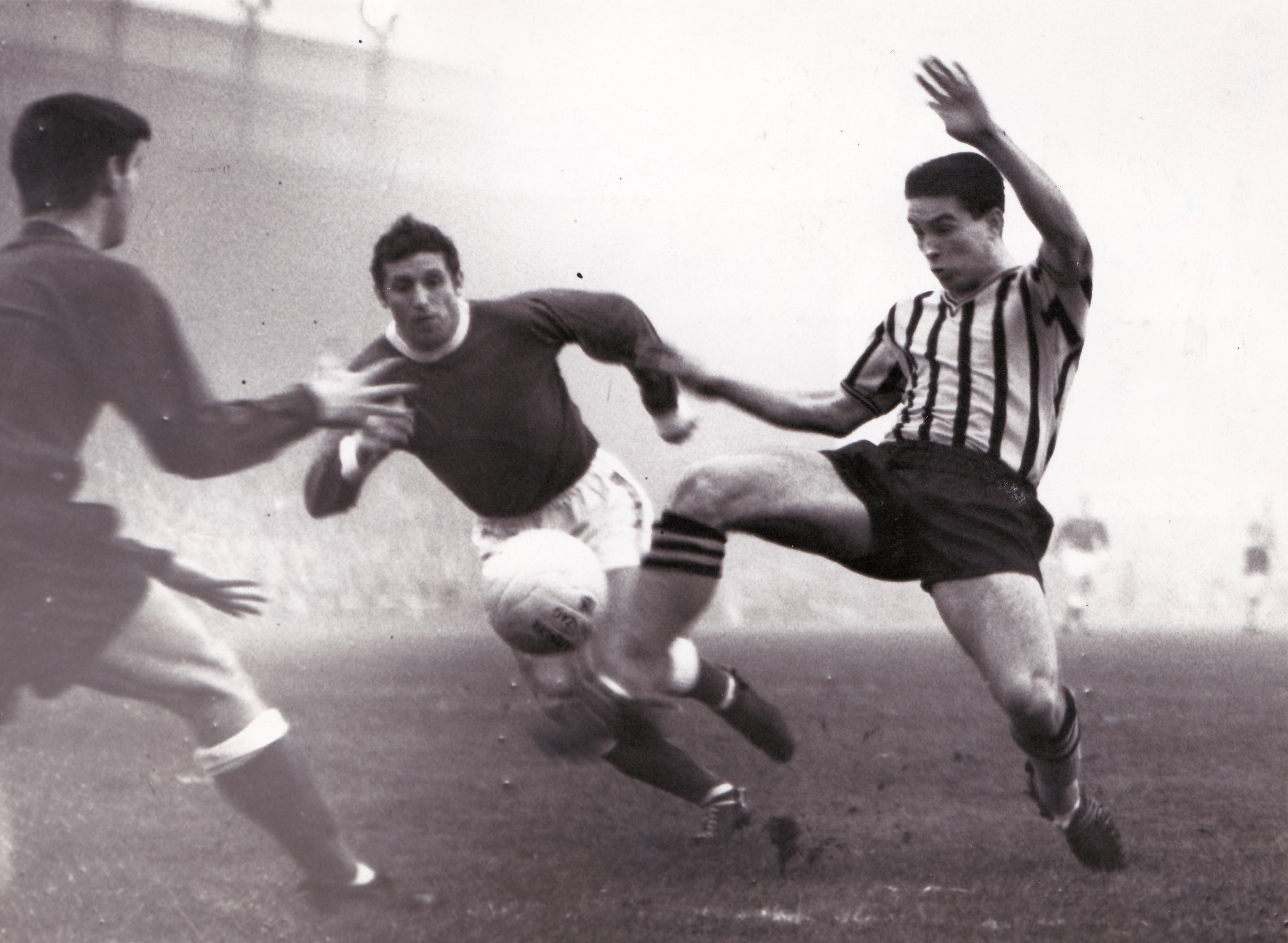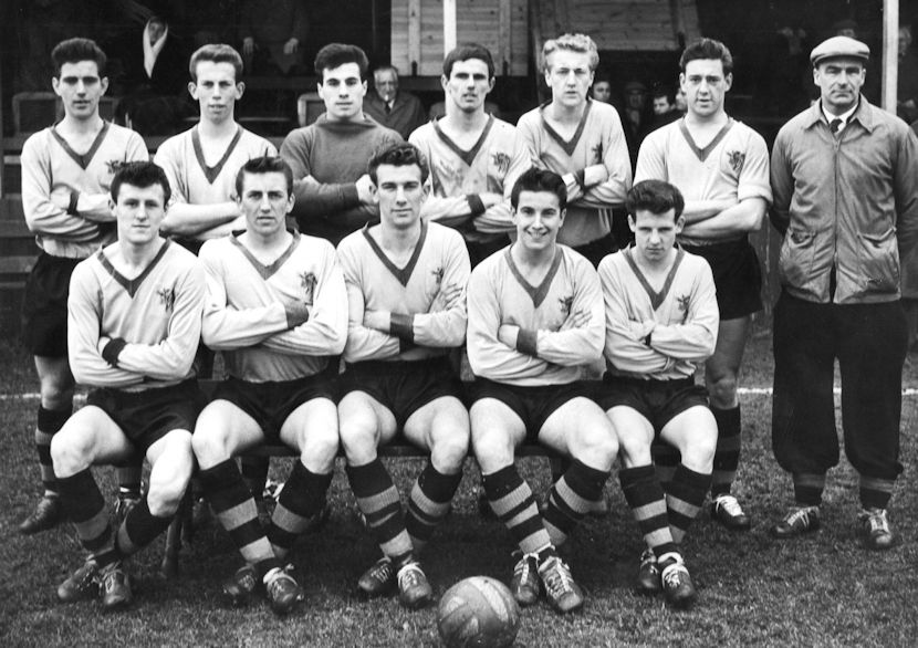 This photograph dated ‘1962’, shows Chillo wearing the Umbro ‘continental’ playing kit used between 1955 and 1962, with black socks topped by amber for five seasons and hooped socks for the final two . Though it appears to show Chilton with the reserves, he had already become a first team regular having made his debut in October 1960.