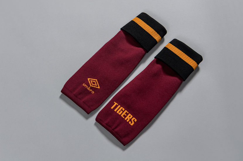 For those of us old enough to answer “where were you when you were shit?” with “At Boothferry Park, obviously”, this modernisation of a 90’s Tigers classic is a tasty slice of nostalgia. I’d love to have seen a polo collar on this to really go retro, but the thin amber collar stand split by a maroon triangular inset panel is very good.