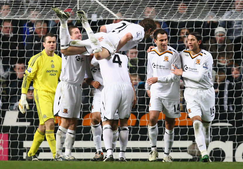 One of the darkest days in City’s kit history came early in 2008/09, the Tigers inaugural Premier League campaign. They travelled to Newcastle with only their ‘flint grey’ away kit, evidently oblivious to the obvious clash caused by the Magpie’s black and white primary kit. The ref was having none of it, and City were ordered to wear Newcastle’s white adidas change shorts and socks, which must have had Umbro fuming. It wasn’t a good look but it didn’t affect the team’s play, they came away from St. James Park with a first Premier League away victory, winning 2-1. Thankfully when City next headed to Tyneside for an FA Cup Third Round replay in January 2009, they’d found a stash of 2007/08 away kits and updated them with Premier League numbers, namesets and sleeve patches in case a third kit was needed. That all-white kit is magnificent, one of City’s finest we’d wager, and in it we recorded a 1-0 win to put City in the Fourth Round.