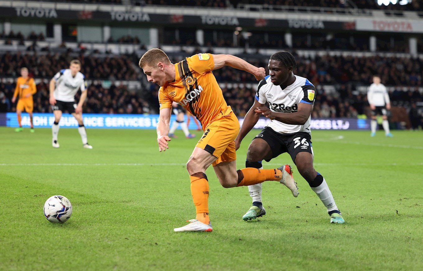 | Championship Tu 8th Feb 2022 Derby 3 City 1 PHOTO | MASH-UP: Primary shirt and socks third kit shorts. Purple keeper kit. |