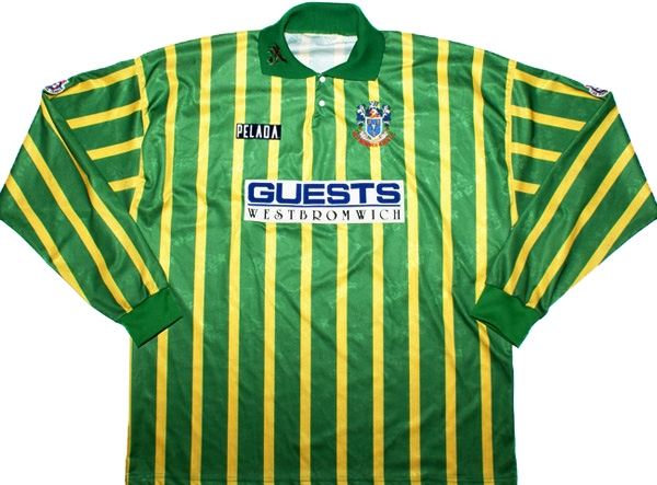 This got us thinking about the Pelada deal struck in 1993, after the relationship between Hull City and Matchwinner deteriorated quickly, and to such an extent that City had little option but to start the 1993/94 campaign in Matchwinner kit but with the Scottish brand’s logo patched over until a new supplier, Pelada, could knock up two sets of kits. Pelada did a pretty good job with the away kit, which featured a shirt that was jade with thin white stripes, but the home kit was a monstrosity, and that’s on the club for tasking the supplier with creating a non-copyright violating approximation of the tiger stripe shirt instead of just saying ‘give us an amber and black shirt.’