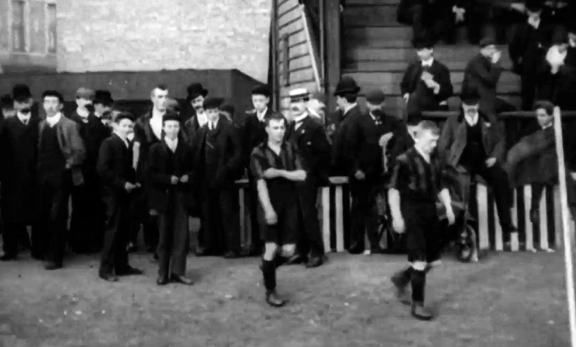 The British Film Institute have a short motion picture of a Mitchell and Kenyon (the Blackburn based film producers) recording that shows a City game from the 1904/05 season that is believed to be from the game in the October against Derby. After dalliances with brown and amber halved shirts with blue sleeves, cardinal red jerseys and red and white halves, the Rams settled on white shirts for their primary kit but they were known to wear a black and white striped change ensemble on occasion.