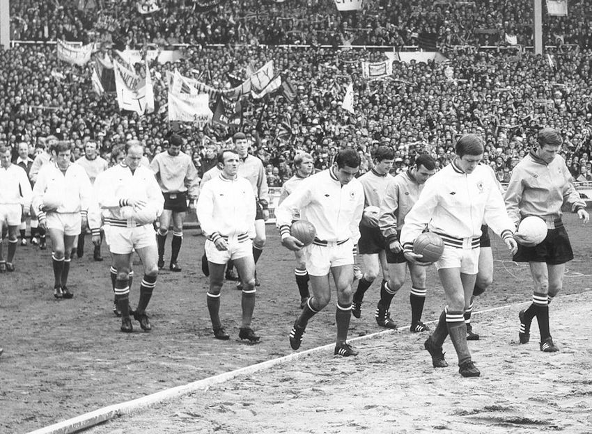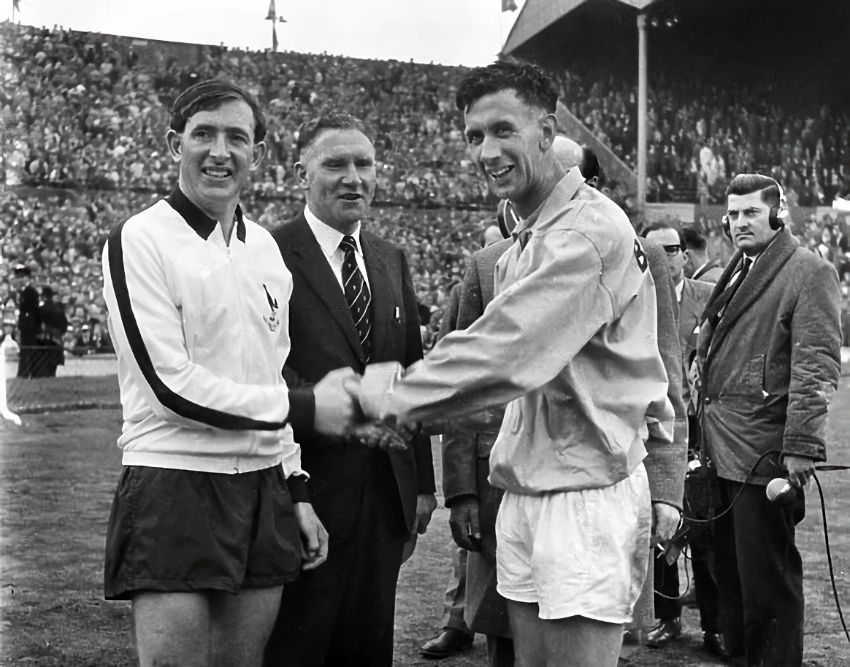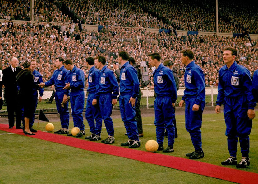 Fully tracksuited in 1961, Leicester rejected any pre-match garb the next time they reached the final in 1963, emerging from the tunnel in just their all-white match kit, though they did have track jackets for the occasion, more on this in a moment.