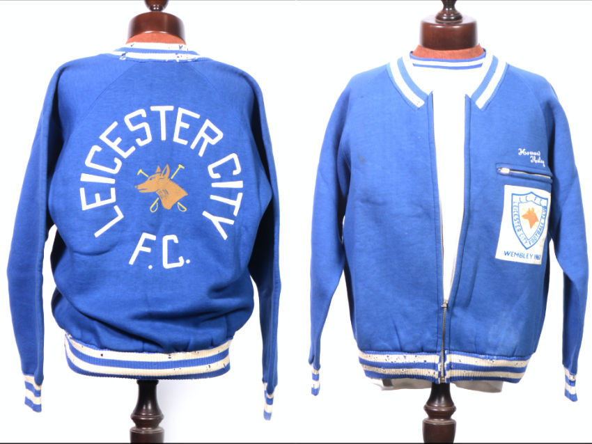 The back of the jacket has the most spectacular decoration however, with a foxhead crossed by riding crops encircled by LEICESTER CITY F.C. in white text. Maybe superstition played a part, but not using this was a poor decision, and the jackets seem to have been used for training in subsequent years and worn to bits instead of being treated like treasured artefacts.