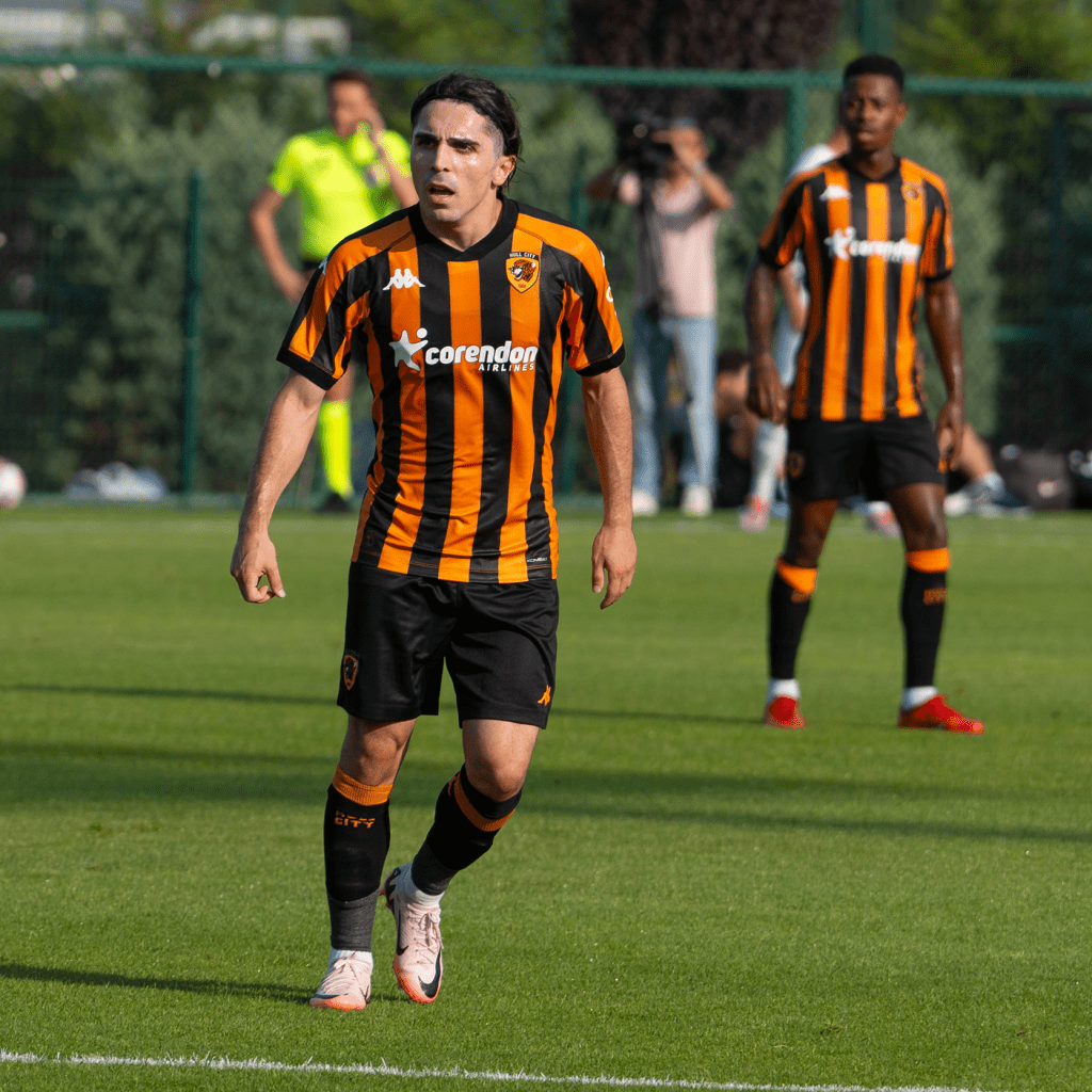City are retaining the sock design used in 2023/24, and that’s all good, I’m a fan of the woven HULL CITY lettering. I don’t know if those shorts worn against Kasımpaşa are part of the 2024/25 kit, however.