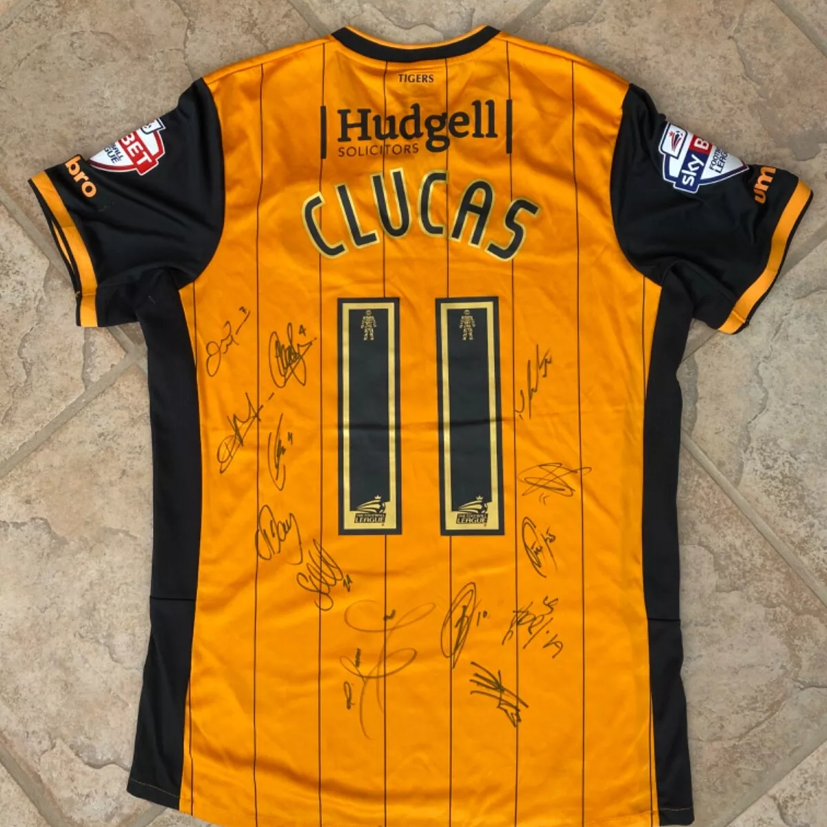Returning to our usual service, and player issue/worn shirts on eBay, this 2015/16 home shirt by Umbro worn by Sam Clucas, which has been squad signed on the back, was listed for £79.99, but we believe a best offer of £72 was the final sale price.