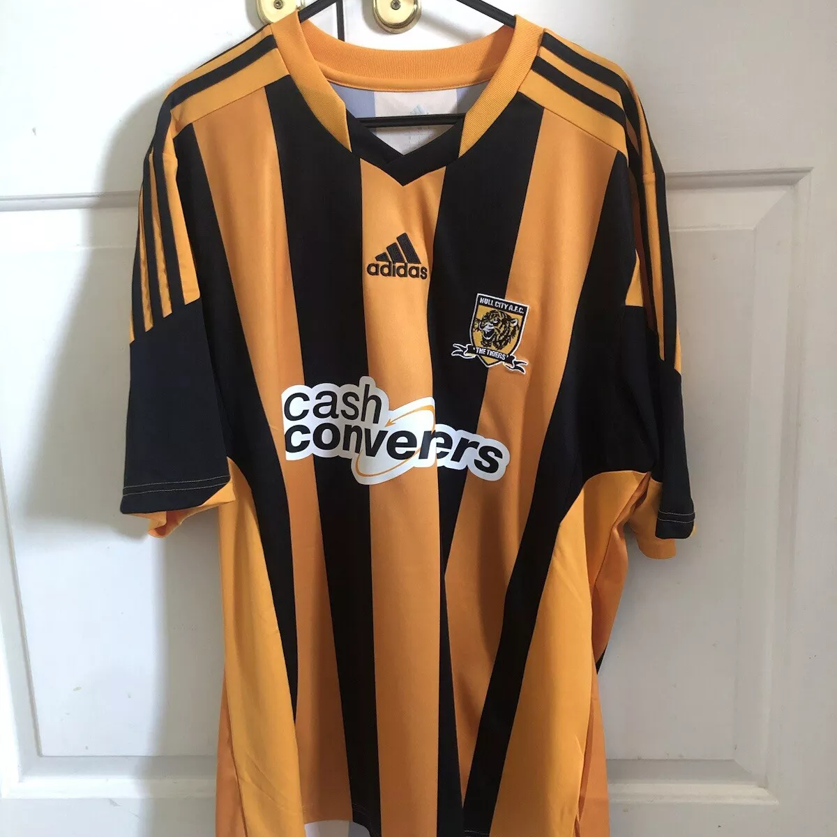 A shirt that doesn’t crop up as much as you’d expect is the 2013/14 home by adidas. Other than the bog eyed tiger on the crest size issue, the sub-optimal sponsor and it being a template shared with West Brom, it’s a splendid shirt. This one in size large was available for £40 or best offer.