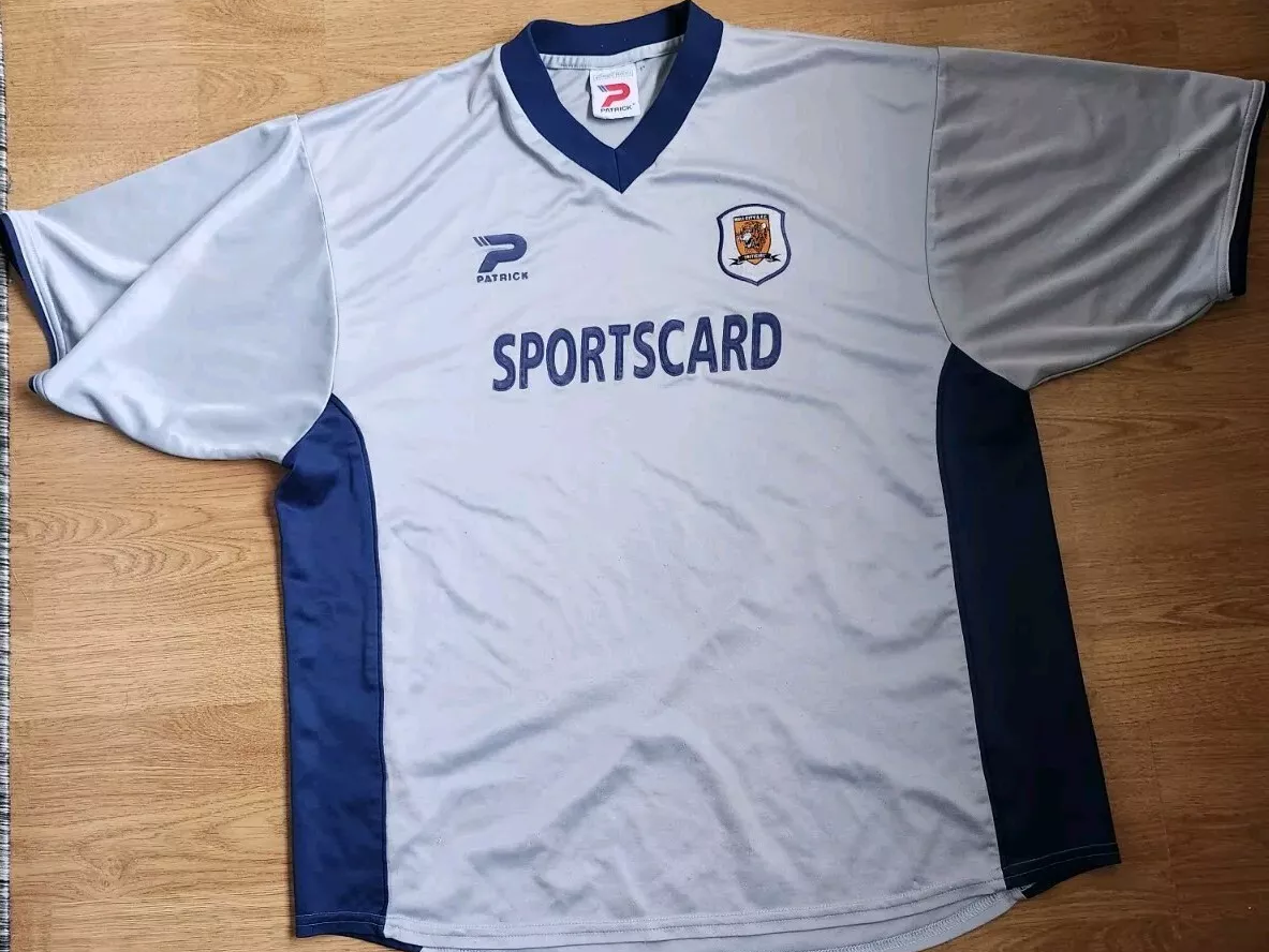 Now that we’ve finished with “gman” we move into the 21st century. An away shirt from 2000/01 by Patrick, in size XL was listed at and sold for £40.