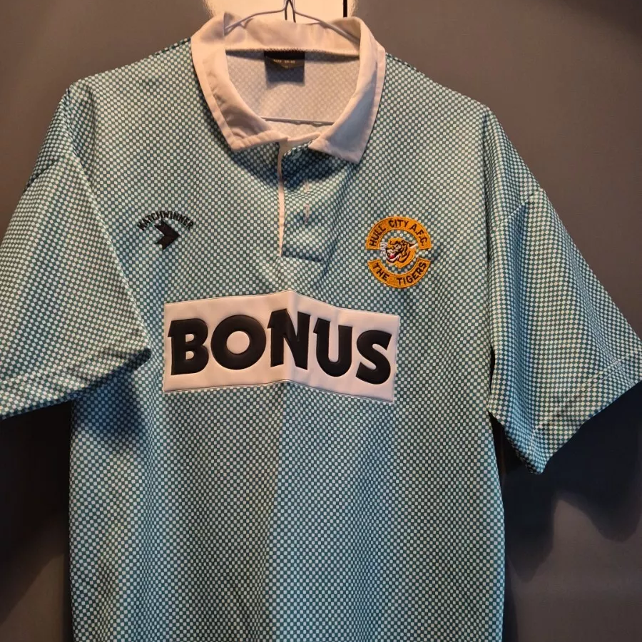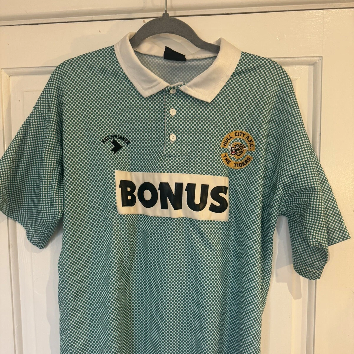 The 1990-92 away is the latest Hull City shirt to have a reissue from the current rights-holder of the Matchwinner brand. Naturally this causes people to consider the worth of the original shirts too. Two such original shirts sold in April, with a staggering 100% mark-up on one of the shirts compared with the other. The first to sell ended on 4th April after being listed at £208.72 (it is possible the best offer option was used here)