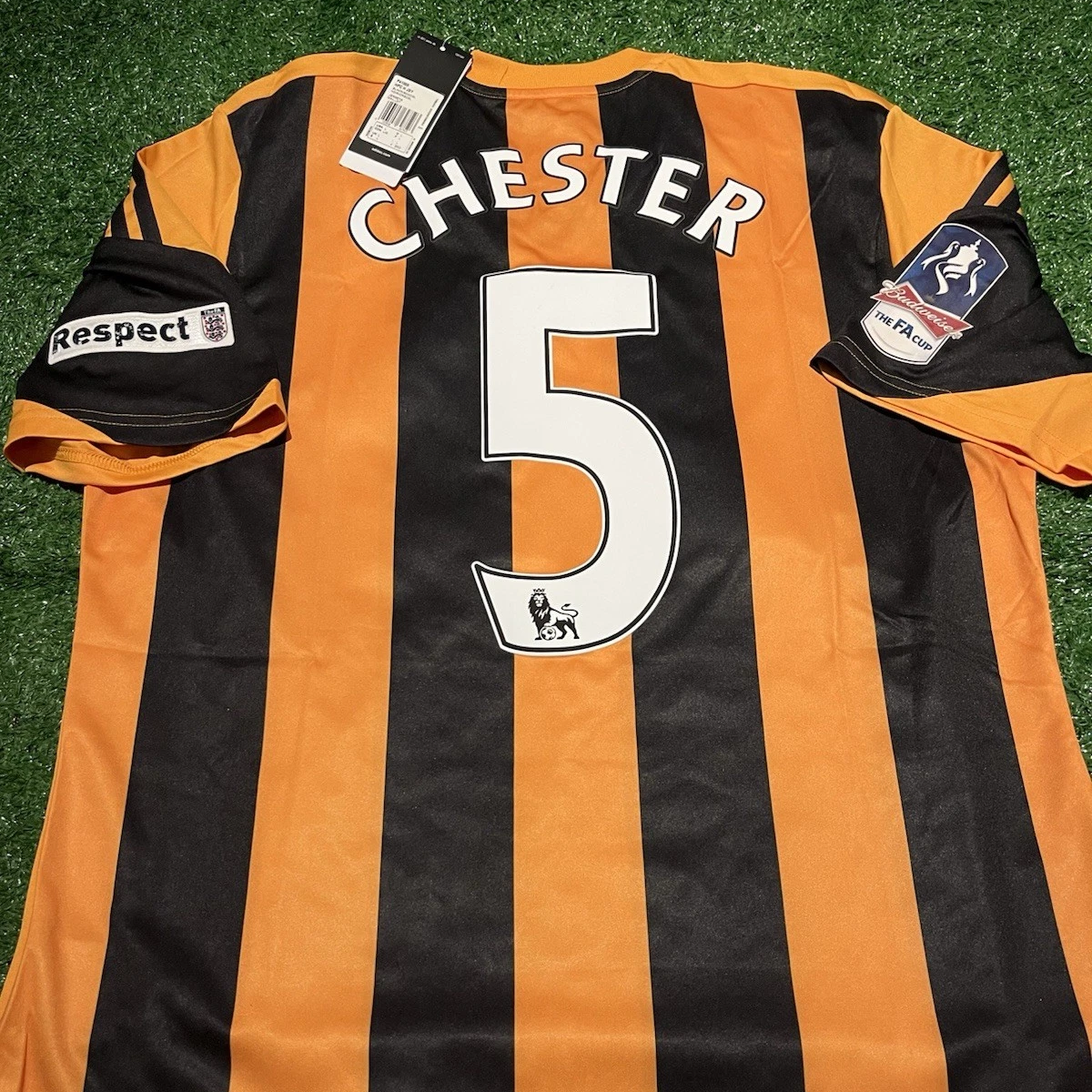 A brand new with tags 2013/14 primary shirt by adidas that has been pimped up with FA Cup appliques and ‘Chester’ as well as his squad number #5 sold for £79.99.