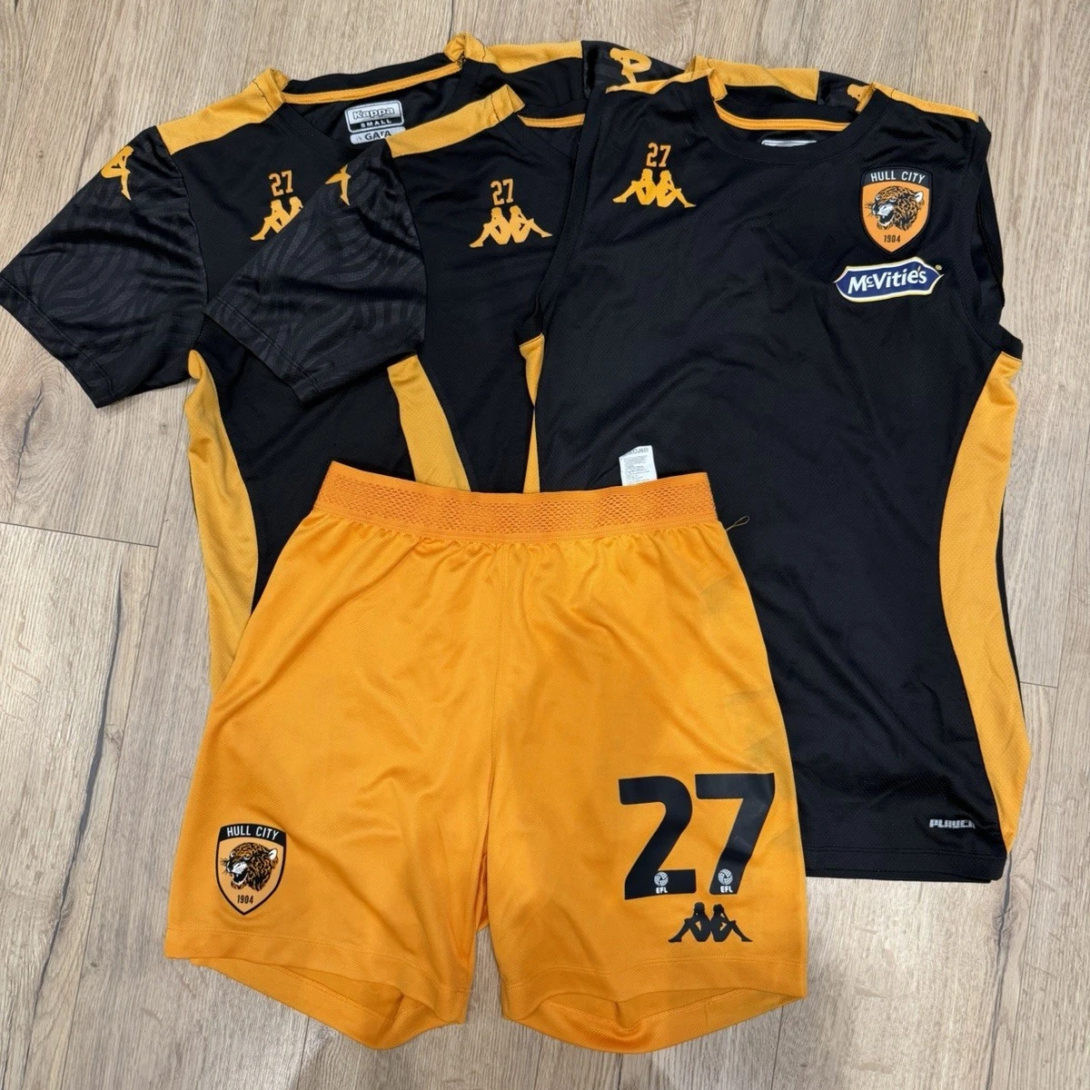 Our next two listings consist of some player-worn training wear. Firstly, are some training tees, which will have likely been used by Charlie Hughes during the 2024/25 season. A pair sold in one listing for and offer, after being listed at £42.29.