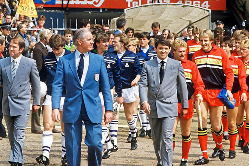 It’s a familiar, almost comforting image… two teams emerge from the Wembley tunnel into bright sunshine, both clad in zip up jackets made from a petroleum by product. Each team stands in line, with the captain introducing his players to a Duke, or a Princess, maybe even the Queen herself, who can’t see that the reverse of the jacket advertises a Danish brewery or a Japanese technology firm. But, when did this type of garb join club blazers or Savile Row suits as a traditional part of the cup final pageantry? Let’s see if we can find out?