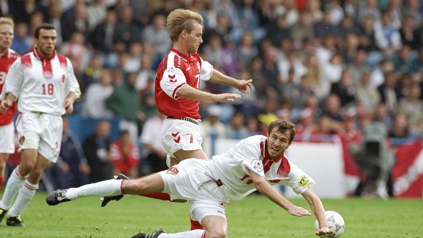 | Group D We 19th Jun 1996 Turkey 0 Denmark 3 PHOTO PHOTO | Turkey: Change kit, light grey/black jersey Denmark: Primary kit, dark grey/multi keeper jersey |
