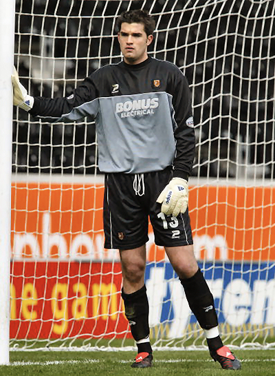 A metallic grey keeper kit was used throughout 2002/03, but in 2003/04 there were two kits for netmen to choose from. Both jerseys had a large black chest and shoulder panel, underneath that one jersey was green, the other grey. Black shorts and socks were used with either jersey.