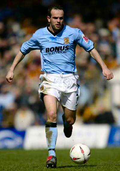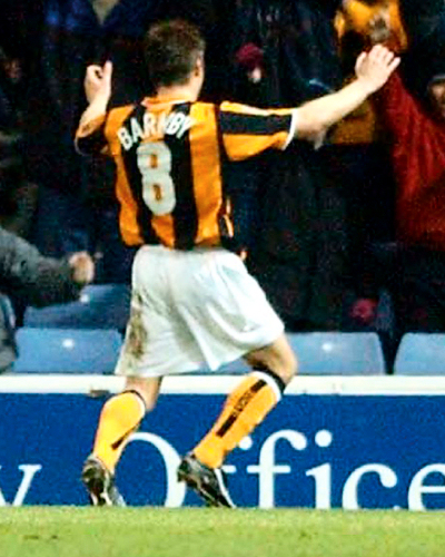 Kit notes: City reverted to stripes for their centenary year, a nod to the first black and amber shirts that inspired the Tigers nickname. The V-neck home shirt featured bold, thick stripes and used a shade of amber a little orangier than that used in previous years. Both collar and cuffs (on the short sleeved shirts) had a thin band of white piping, and the club crest had 1904-2004 text on the banner which normally reads ‘The Tigers’.