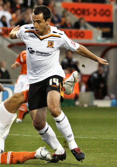 The 2007/08 away kit is one of the finest ever worn by City, using the traditional Tigers away scheme of all white, last seen in 2002/03. Sponsor Kingston Communications had that name used on the white shirt instead of the ISP brand advertised on our home shirts. The full away kit was used at Coventry, Wolves, Norwich, Crystal Palace, Scunthorpe, Sheffield United and Watford (twice, once in the play off semi at Vicarage Road).