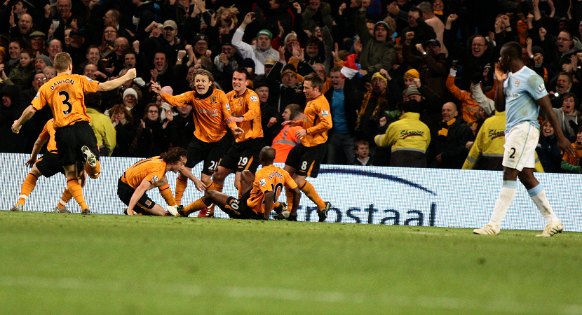 Chinese laws regarding the advertisement of betting services meant the shirts worn in two Barclay’s Asia Trophy fixtures in Beijing were sans-Totesport branding. The colour of the away kit was termed ‘Fusion blue’ by Umbro, shirt, shorts and socks were all of that shade with navy contrast trim. That kit was worn at Wolves, Fulham, Bolton and Tottenham in the Premier League, and in a mid-season friendly against Atalanta in Bergamo, Italy.