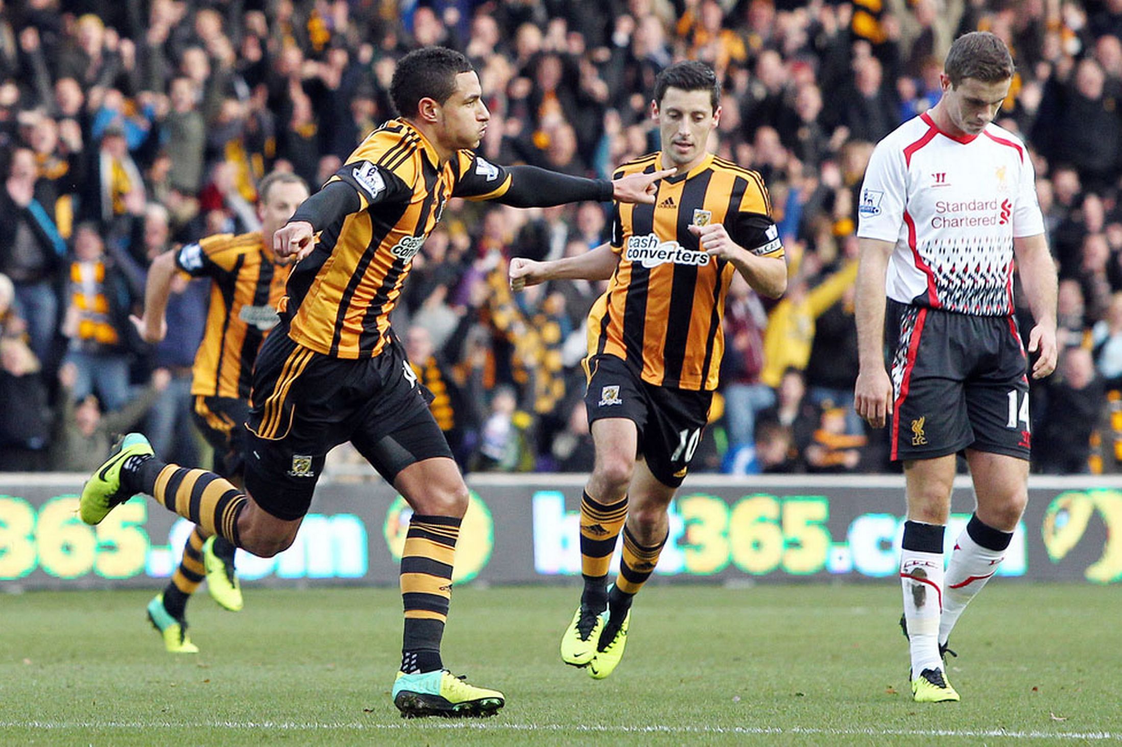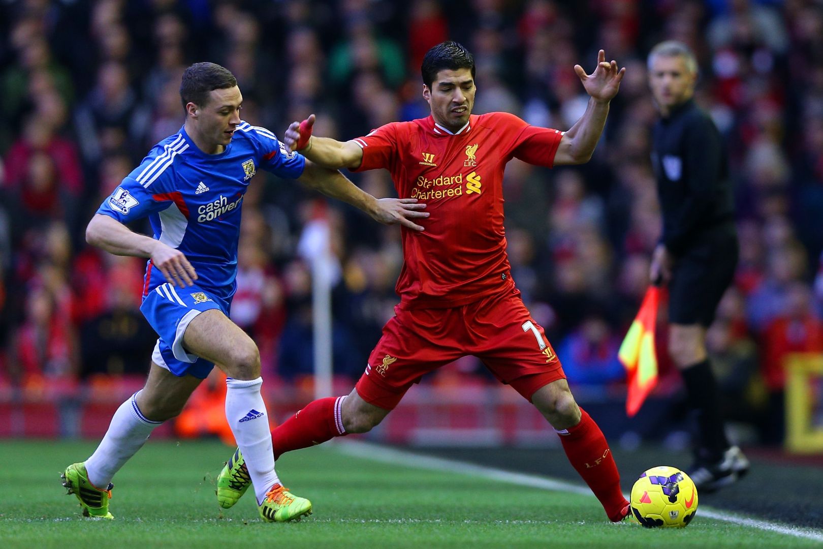| Premier League We 1st Jan 2014 Liverpool 2 City 0 PHOTO | Change kit with white socks, green keeper kit |