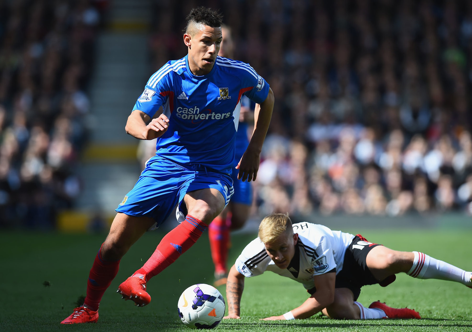 | Premier League Sa 26th Apr 2014 Fulham 2 City 2 PHOTO | Change kit with red socks, dark shale keeper kit |