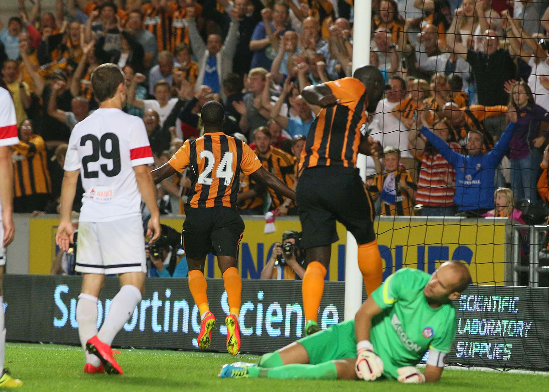 | Europa League PO Th 28th Aug 2014 City 2 Lokeren 1 (agg. 2-2 away goals rule defeat) PHOTO | Primary kit (Euro style shirts with plain amber back panel) with amber alternate shorts. Purple keeper kit. |
