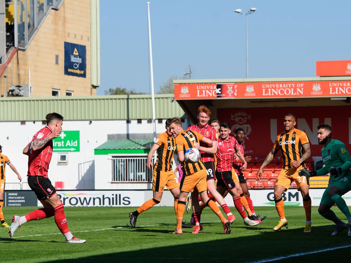 | League One Sa 24th Apr 2021 Lincoln 1 City 2 PHOTO | Primary kit with amber alt. shorts, Green keeper kit. |